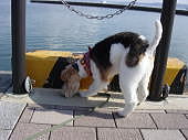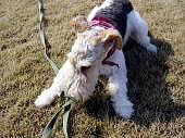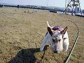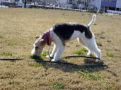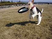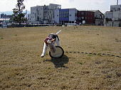 フリスビーの練習や服従の訓練を頑張るよ。でも、上達しないんだよね〜♪気長に頑張るっ! |
