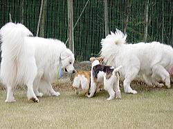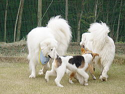 ポテトは遊んで欲しくて、みんなにすぐちょっかいをかけるんだ。すみません。ワンコたち、ファミリーの皆さんいつも、こんな礼儀しらずで、御バカなポテトと遊んでくれてありがとう。これからも、どうぞよろしくね。 |
