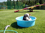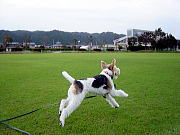 芝に沢山の露が含まれるようになった秋。まだ、夏が名残惜しいのかポテトとの生活も夏の延長線上のように、